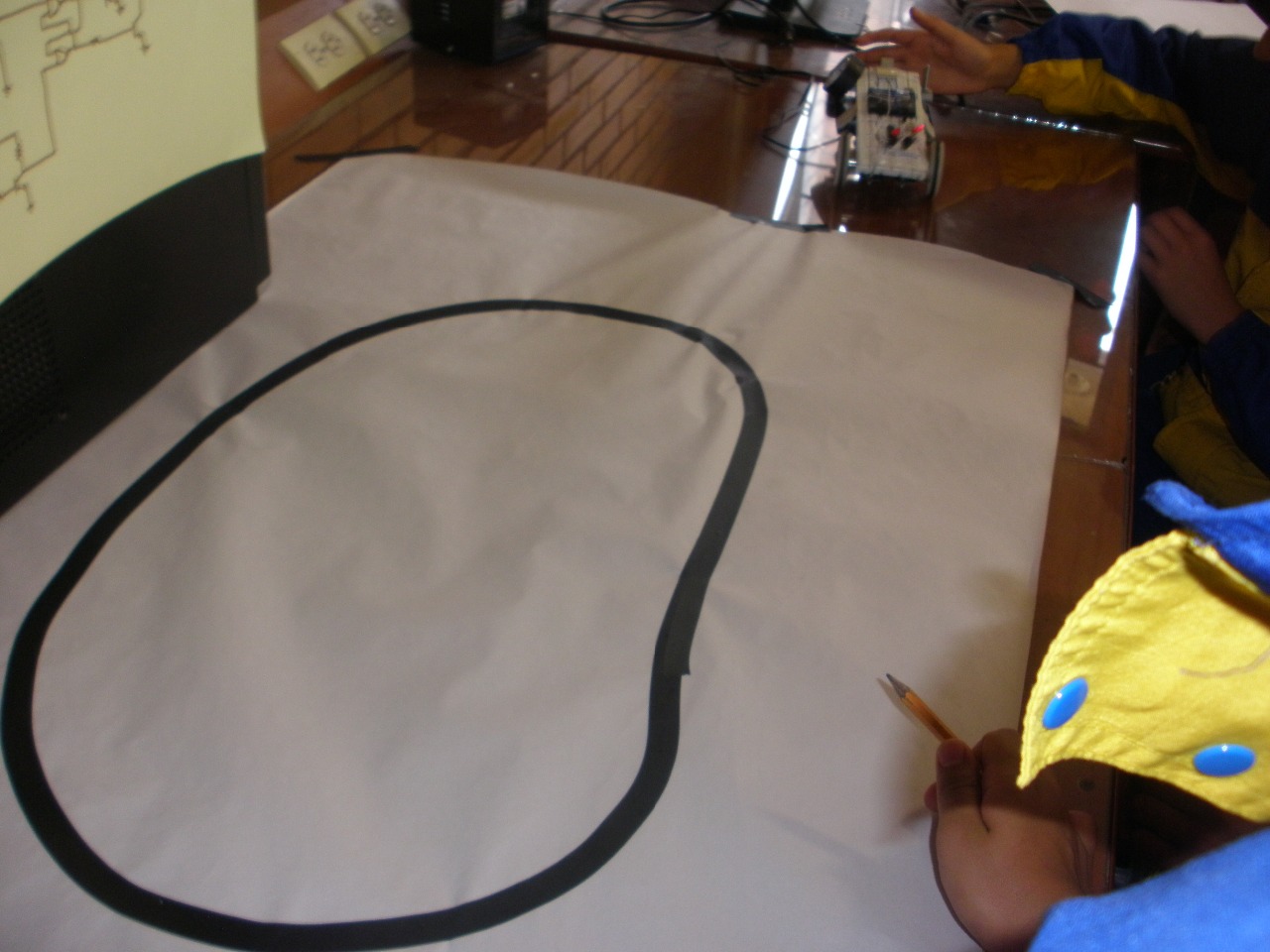 EStos cumplen una unica musión, seguir una linea marcada en el suelo normalmente de color negro, sobre un tablero blanco.